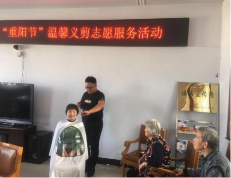 在活动中,为老人测量血压、血糖等义诊活动,同时,还为老人们进行了义剪服务,幼儿园的师生们为老人们进行了慰问演出。